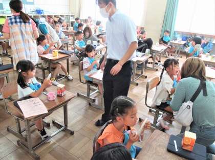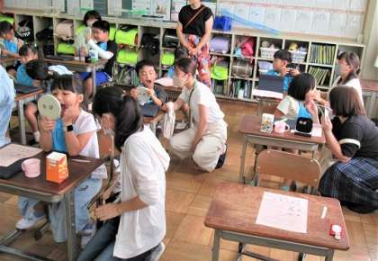 染め出しをして、奥まで歯ブラシを入れて磨く練習をしていました。