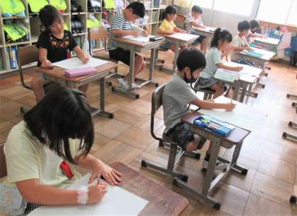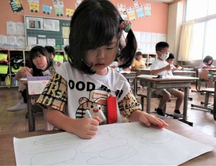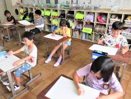 お話を聞いてイメージし、下絵を描いていました。