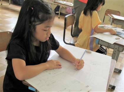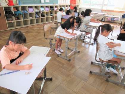 下書きのワークシートに書いたものを画用紙に大きく書き写していました。