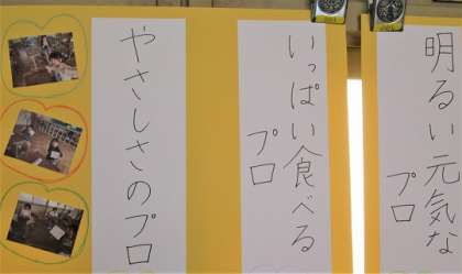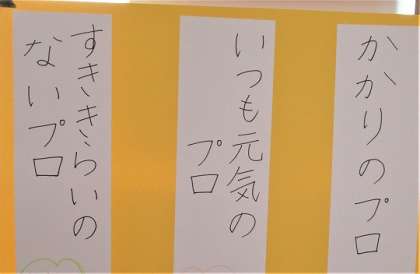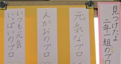 9/24(日) プロ 公開日 2023/09/24 更新日 2023/09/24 旭東+(プラス) 2年生の学級掲示、「見つけたよ二年一組のプロ」です。全員が何かのプロです。掲示でだれかわかるかな? これからも自分の長所を伸ばして成長できるとよいです。