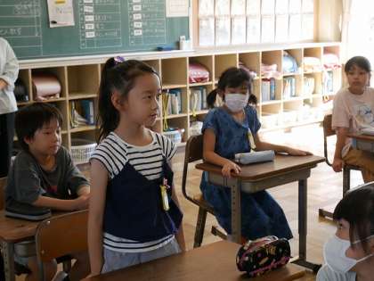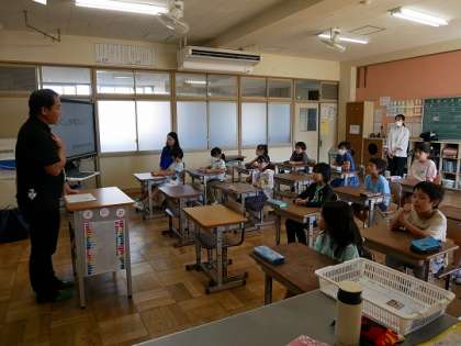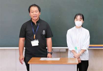 福祉実践教室の事前授業で、社会福祉協議会の土田さんと佐藤さんにお越しいただき、「ふくし」について学習しました。