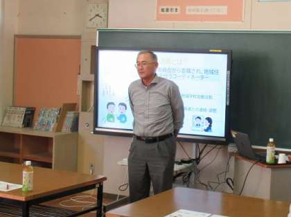 来年度から始まるコミュニティスクールについて、わかりやすく説明していただきました。来年度から本校のコーディネーターとなっていただく門井真二郎さんにもお越しいただきました。