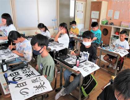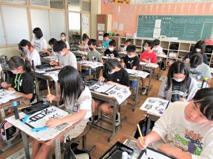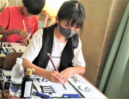文字の大きさや字間、行間などに気をつけて練習していました。