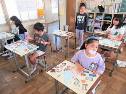 10/12(木) 夢に向かって 3 公開日 2023/10/12 更新日 2023/10/12 旭東+(プラス) 完成したドリームマップを見て、夢に近づくために心がけたいこと,がんばりたいことなどを一人一人が発表できました。