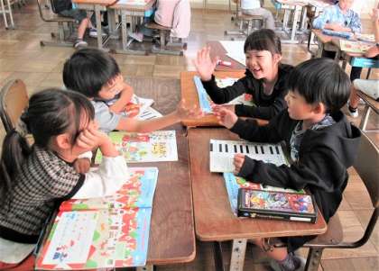 高い声、低い声、強い声、弱い声、長い声、短い声など、いろいろな声で表現していました。