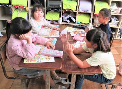 グループになって、ねこの鳴き声で遊んでいました。