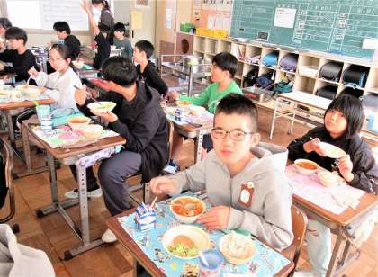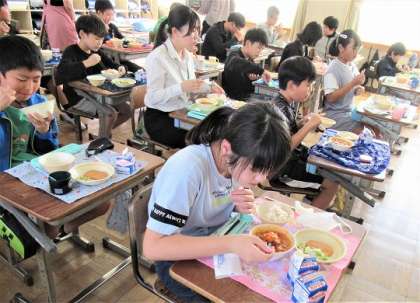 10/16(月) 今日の給食 2 公開日 2023/10/16 更新日 2023/10/16 旭東+(プラス) ハヤシライスは食べやすそうです。ご飯を混ぜて食べる児童、別々に食べる児童と個性が分かれます