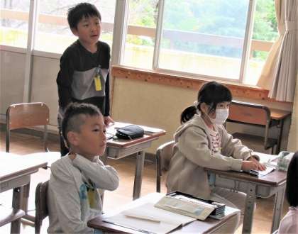 「花がさきました。」という文を基準にして、説明する言葉を考えていました。