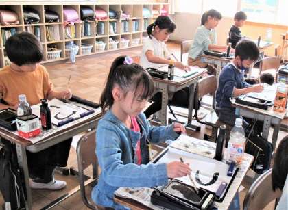 3年生の書写では、「ひらがなの筆使い」を学習していました。