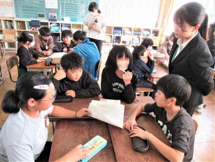グループで、校内のけがをしそうな危険箇所やけがを防ぐ方法を考えていました。