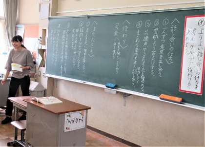 5年生の国語では、「よりよい学校生活のために」の話し合いを振り返る学習をしていました。