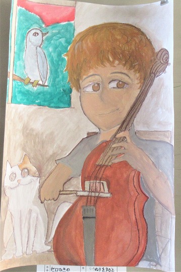 宮沢賢治作「セロひきのゴーシュ」の読書感想画です。