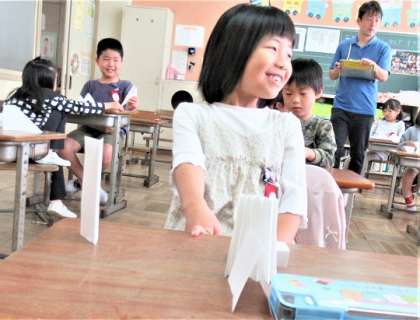 折って立てた形から、何に見えるか考えていました。