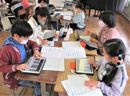 最後はグループで、一人一人が作った旋律を合わせて、1つの曲を作りあげていました。