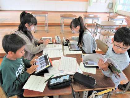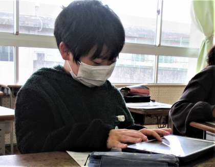 12/5(火) 音階をもとに 2 公開日 2023/12/05 更新日 2023/12/05 旭東+(プラス) 「さくらさくら」「ソーラン節」「沖永良部の子もり歌」の音階を使い、各自がタブレット鍵盤を利用して旋律を作っていました。
