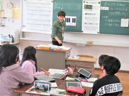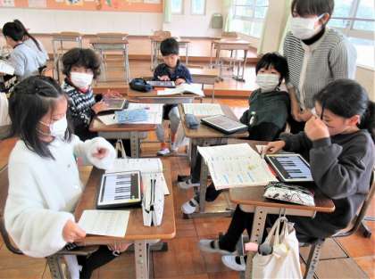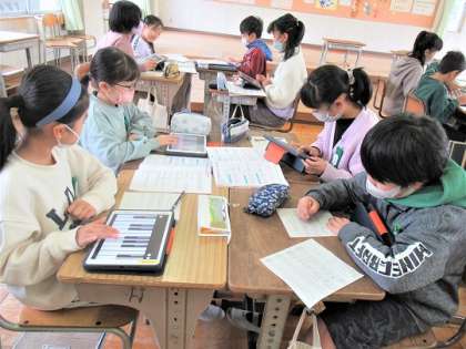 4年生の音楽では、「音のスケッチ」を学習していました。