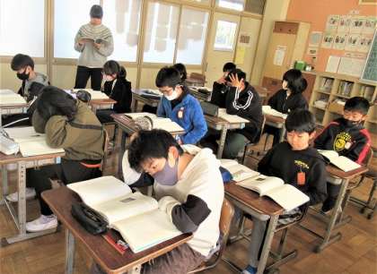 まずは、分からない言葉をチェックしながら範読を聞いていました。