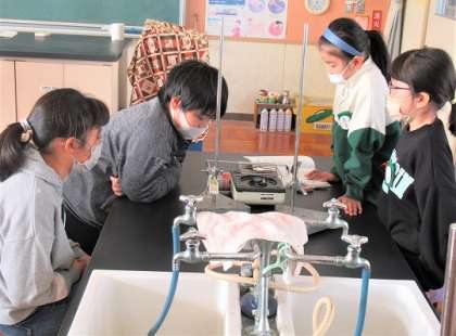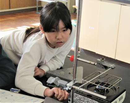 金属の棒が長くなったことから、熱すると金属の体積が増えることを学習していました。