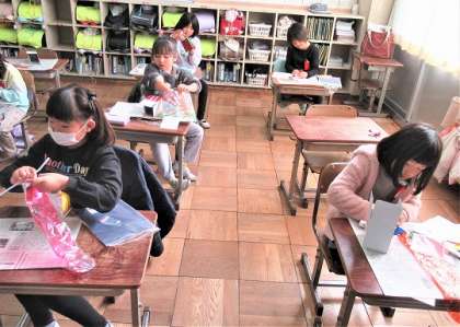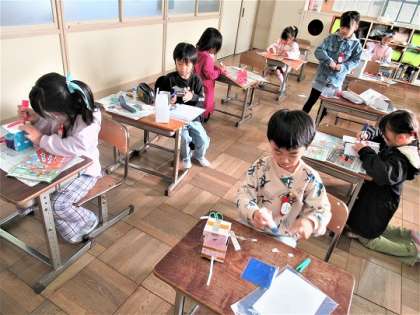 箱から飛び出す動きを確認しながら、楽しく作品づくりをしていました。