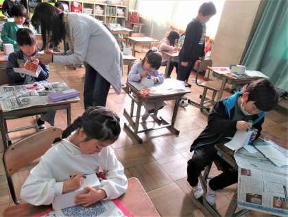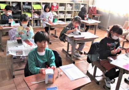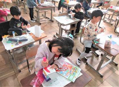 1年生の図工、「にょきにょきとびだせ」の作品づくりです。