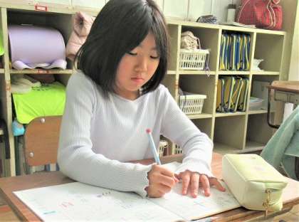 書き順の決まりを守って、「六・音・八・竹・土」などの漢字の練習をしていました。