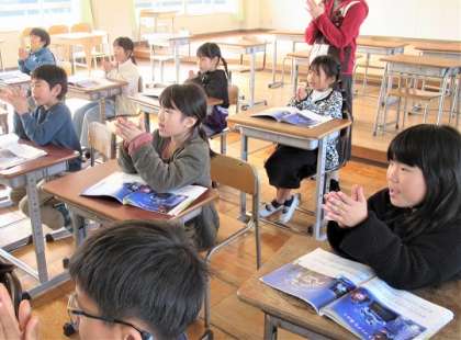 2年生の音楽では、クリスマスソングを歌いながら楽器を演奏する学習をしていました。