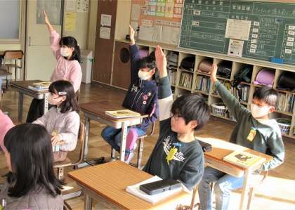 3年生の社会では、「うつりかわる市とくらし」を学習しています。今日は、担任の先生から四角い木箱のようなものが……。だれも何か知らない様子。