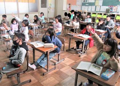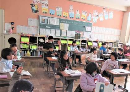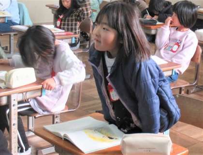 クイズをしながら、「いる」と「ある」の使い方の違いを学習していました。