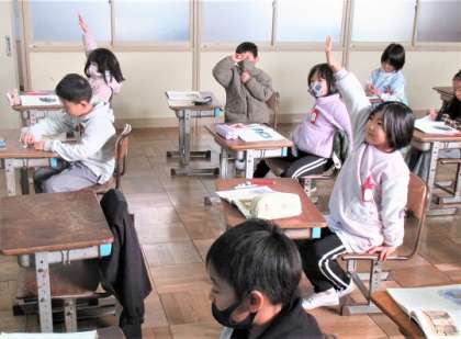 1/23(火) 言葉遊びで 2 公開日 2024/01/23 更新日 2024/01/23 旭東+(プラス) 「かばんのなかには(かば)がいる」「みかんのなかには(かん)がある」など、クイズ形式で( )に入る言葉を考えていました。