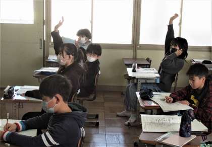 県の伝統的な工業について、作業帳から気づいたことを発表していました。