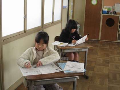 忍者プリント(復習プリント)を使って、2年生の学習の確認をしていました。