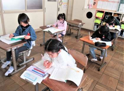 範読を聞いて、感じたことや思ったことを文にまとめていました。