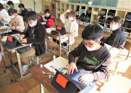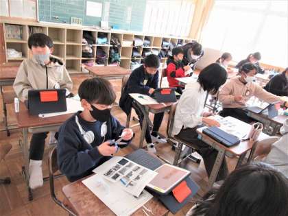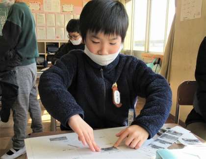 担任から配られた建物の写真はどんな建物なのかを調べていました。