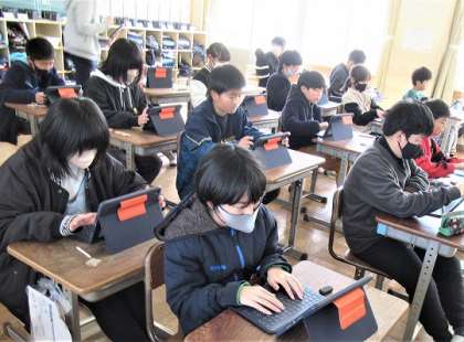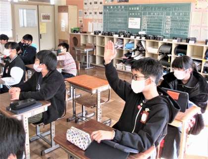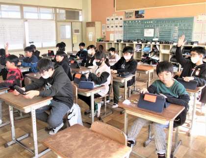 2/16(金) 提案しよう 2 公開日 2024/02/16 更新日 2024/02/16 旭東+(プラス) アンケートをタブレットで送り合って答えることで情報を集め、説得力のある提案をする準備をしていました。