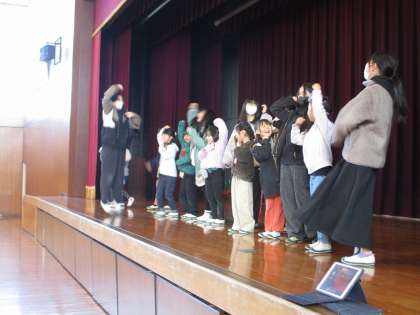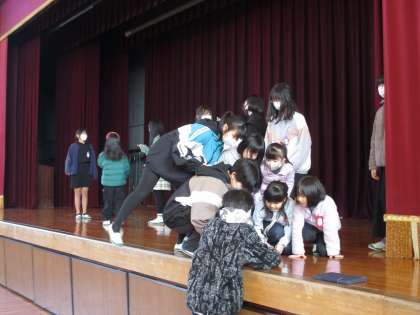 靴とばしをした後は、ジェスチャーゲームで盛り上がっていました。