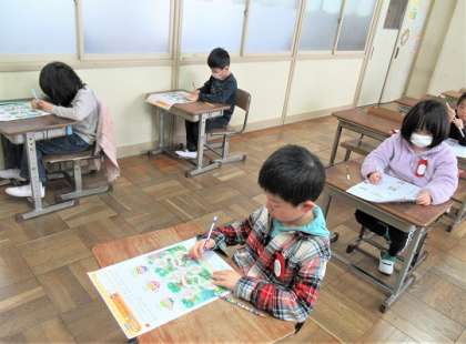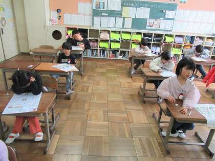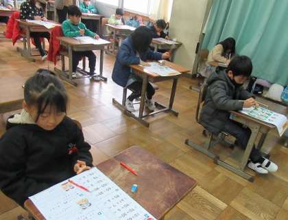 1年生の算数では、「100までのかずのけいさん」のまとめテストをしていました。