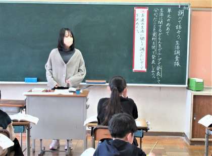 4年生の国語では、「調べて話そう、生活調査隊」を学習していました。