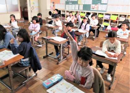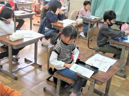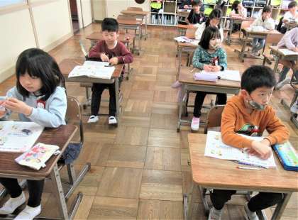 1年生の算数は、「おおいほうすくないほう」を学習していました。