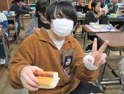 パンにフランクフルトやキャベツを挟んで、にっこり。