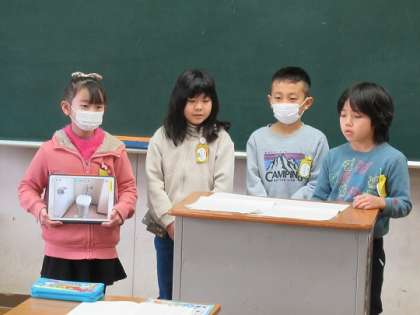 グループ発表を聞き、さらによい発表とするためにアドバイスをし合っていました。