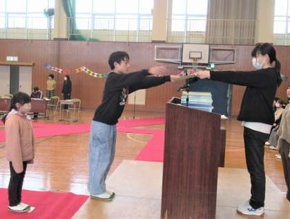卒業証書授与の練習。