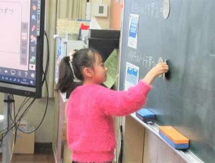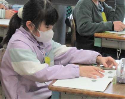 100円玉の模型を使って考え、答えを出していました。