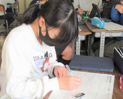 5年生の算数では、たしかめプリントの問題に取り組んでいました。