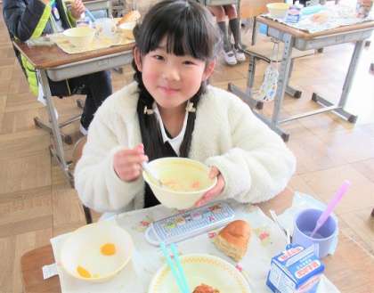 3/14(木) 今日の給食 公開日 2024/03/14 更新日 2024/03/14 旭東+(プラス) 今日のメニューは、黒ロールパン、牛乳、鶏肉のハーブ焼き、キャベツのクリーム煮、フルーツポンチでした。