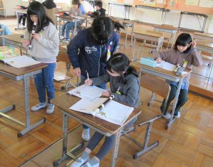 リコーダー、ピアノ、歌のグループに分かれて練習していました。