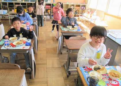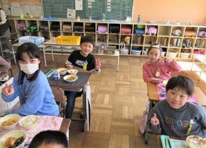 今日のメニューは、麦ご飯、牛乳、揚げ餃子2個、麻婆豆腐、春雨とひじきの中華和えでした。