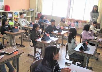 組み合わせてできた文を聞いて、みんなで楽しんでいました。