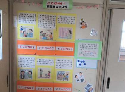 4/7(日) 保健室の使い方 公開日 2024/04/07 更新日 2024/04/07 旭東+(プラス) 保健室前の掲示です。養護教諭が作ってくれています。「保健室の使い方」について考えることができる掲示となっています。