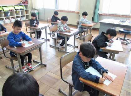 1年生は、ひらがなで自分の名前を書く学習をしていました。