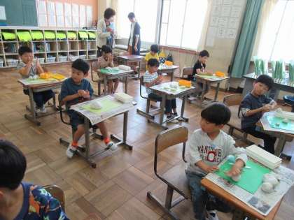 1年生の図工は、「ねんどとなかよし」の学習です。